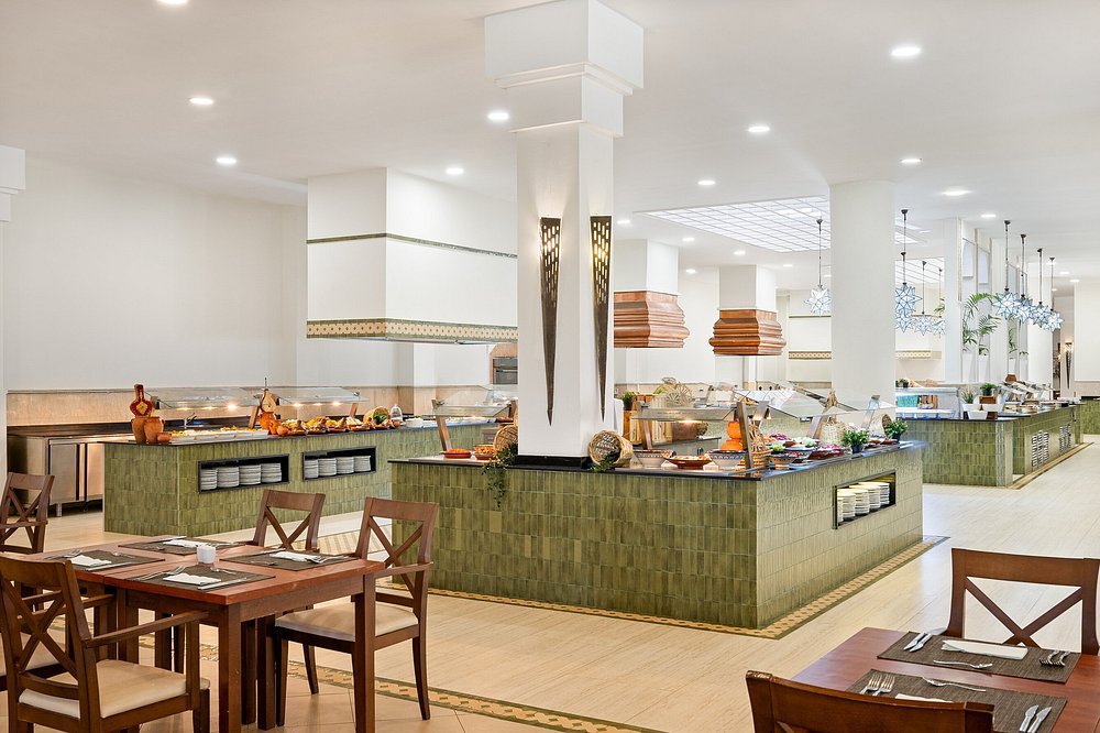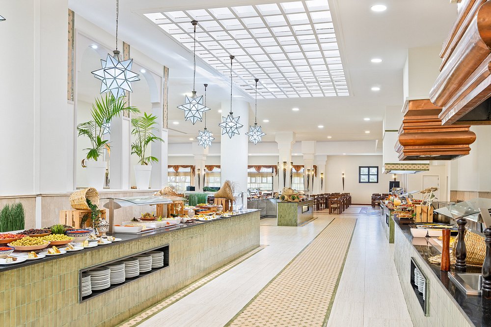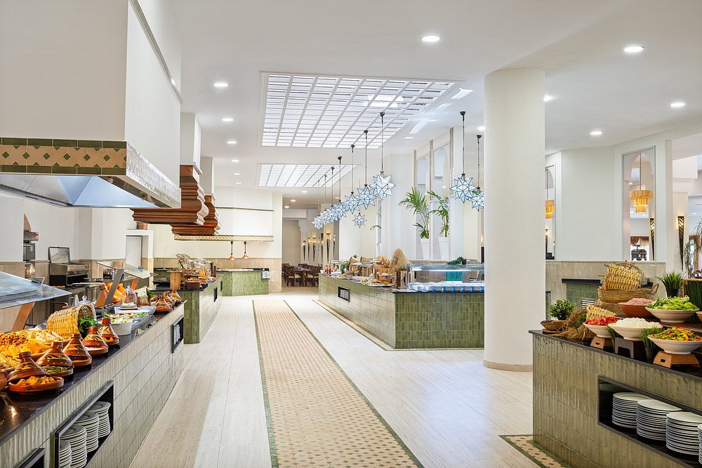 Parmi les meilleurs hôtels tout-inclus de Saïdia, l'Iberostar Waves Saïdia se distingue par ses offres culinaires exceptionnelles. Avec quatre restaurants et six bars, vous pouvez déguster une variété de saveurs, de la cuisine marocaine locale aux plats internationaux. Que vous ayez envie d'un dîner romantique en bord de mer ou d'un déjeuner casual au bord de la piscine, cet hôtel tout-inclus propose de nombreuses options pour chaque moment du jour et de la nuit. La formule inclut les repas (petit-déjeuner, déjeuner, dîner), les boissons locales et les cocktails dans les bars du resort. L'hôtel propose une gastronomie d'inspiration marocaine avec 4 restaurants et 5 bars. Les activités quotidiennes, les animations nocturnes avec spectacles, l'accès aux piscines et à la plage, ainsi que le club enfants Star Camp sont inclus. Certains soins spa et restaurants à thème peuvent être soumis à des suppléments.