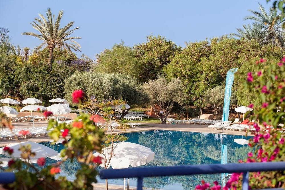 Club tout inclus 4 étoiles (normes locales) niché au coeur de la Palmeraie de Marrakech, sur un domaine de 12 hectares avec vue imprenable sur l'Atlas. Construit dans un esprit riad, le complexe propose 432 chambres réparties dans 9 bâtiments de 2 étages aux tons ocre, autour de jardins fleuris et d'un plan d'eau traditionnel. Certifié Travelife Gold et Clé Verte, il offre animations francophones, aquapark, spa/thalasso et nombreuses activités sportives en formule tout inclus.