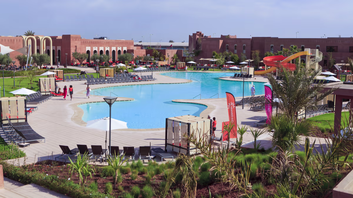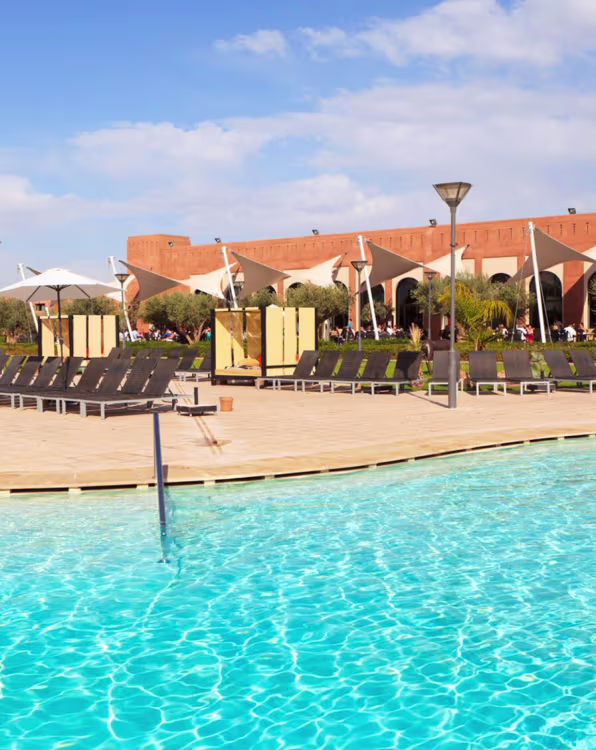 Resort 5 étoiles niché au cœur d'un domaine de 10 hectares planté d'oliviers, avec une vue imprenable sur les montagnes de l'Atlas. Idéal pour les couples et les familles, il propose une formule tout inclus riche, quatre piscines dont un parc aquatique avec toboggans, un vaste spa luxueux de 1500 m² et des animations complètes.
