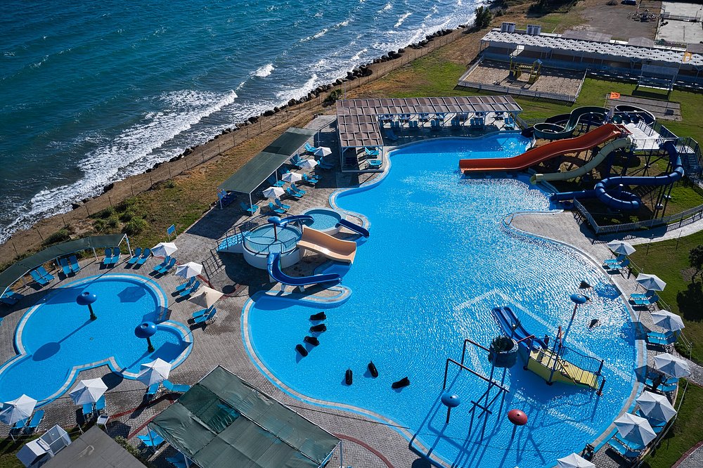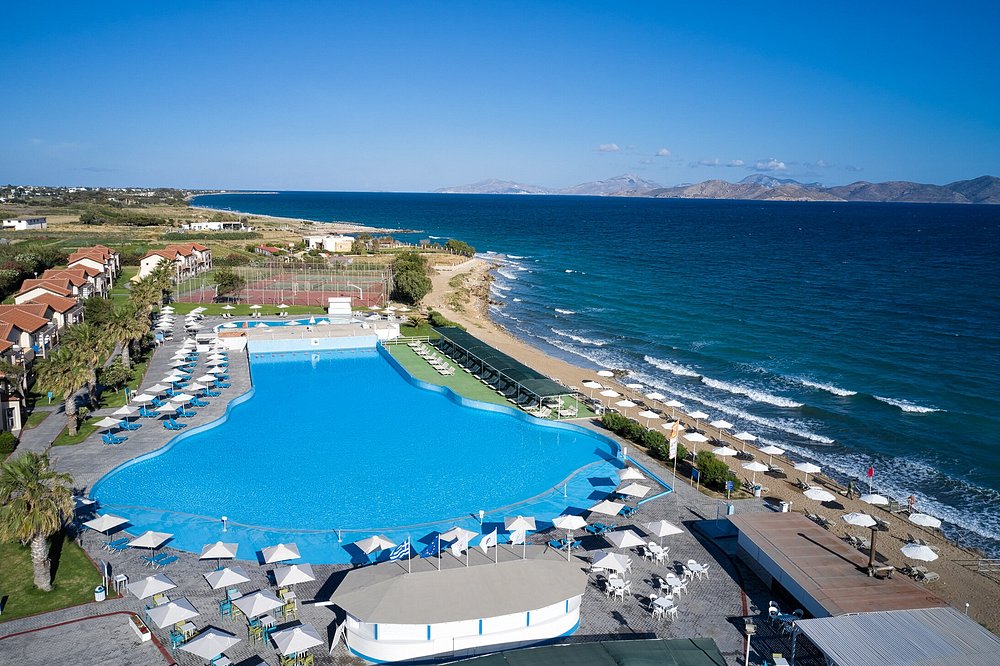 Situé en première ligne de plage sur la côte nord de Kos, à Tigaki, le White Olive Marine Aquapark bénéficie d'un cadre paisible mais bien connecté. La célèbre ville de Kos avec ses ruelles pittoresques, ses restaurants typiquement grecs et sa vie nocturne dynamique ne se trouve qu'à 6 km, facilement accessible en taxi ou bus local. L'aéroport international Hippocrates est accessible en 25 minutes de route, idéal pour les arrivées et départs sans stress. Cette localisation privilégiée offre un équilibre parfait entre détente balnéaire et proximité des attractions touristiques de l'île.