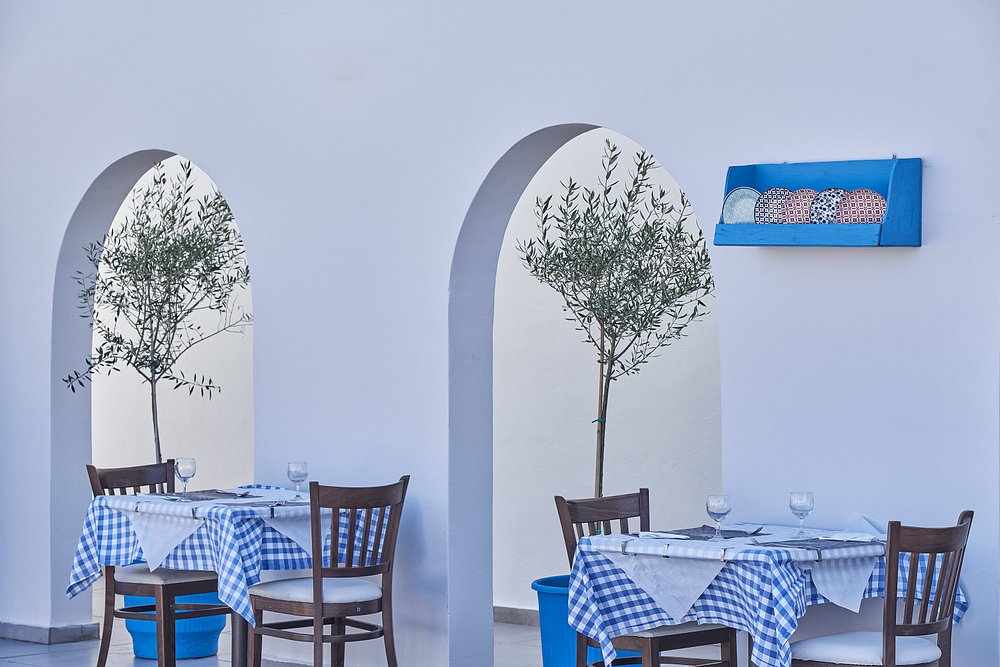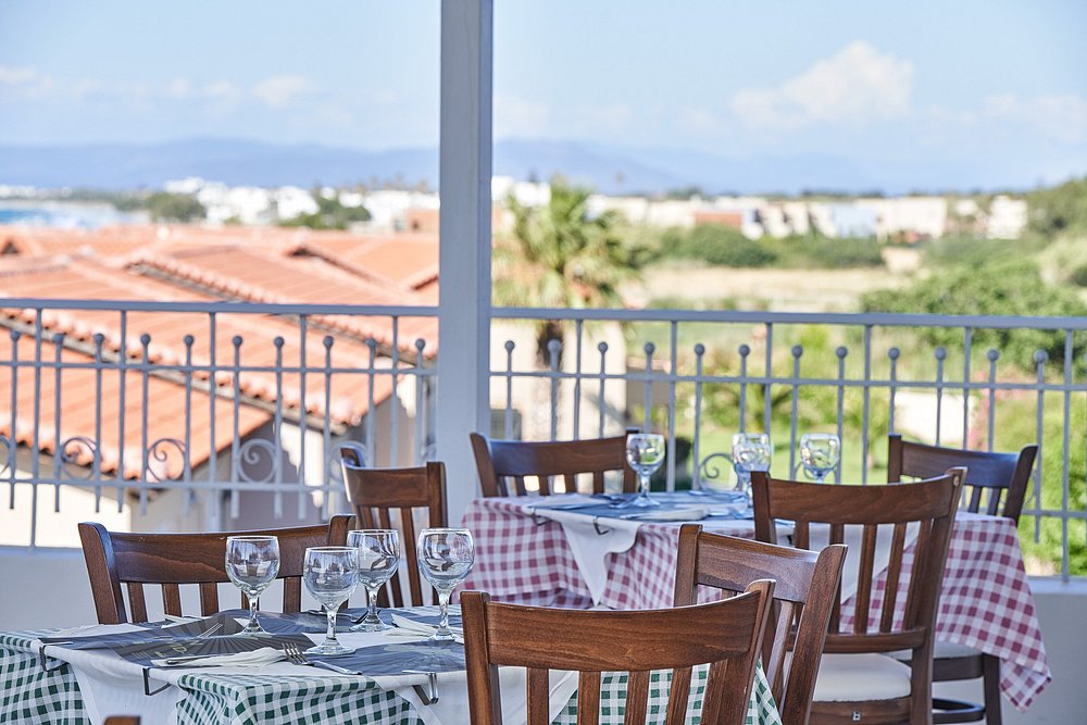 • Nafsika (Restaurant Principal) (International & Méditerranéenne) — Restaurant principal buffet proposant une large gamme de cuisines locale et internationale. Petit-déjeuner, déjeuner et dîner inclus avec soirées thématiques régulières (soirée grecque, italienne, BBQ, etc.). Ambiance conviviale en demi-pension ou all-inclusive. Dress code : casual, shorts interdits au dîner.